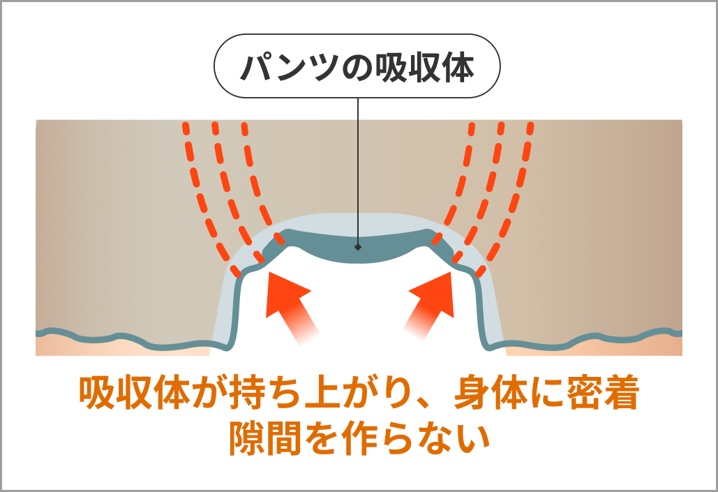 体にフィットする構造で、隙間を作らず横モレをブロックします。他社製の尿とりパッドも収まるサイズで、安心です。